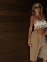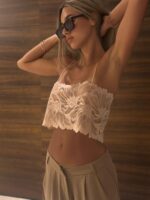 נשיות מתפרצת בסטייל בלתי מתאמץ. טופ קרופ בגזרה רופפת וקלילה, הכולל כתפיות ספגטי דקיקות ועיטורי תחרה עדינים בקו המחשוף. הפיס המושלם ליצירת לוק שכבות מתוחכם או כטופ נועז וסקסי לערב, שמשלב בין רכות לאדג' מודרני.