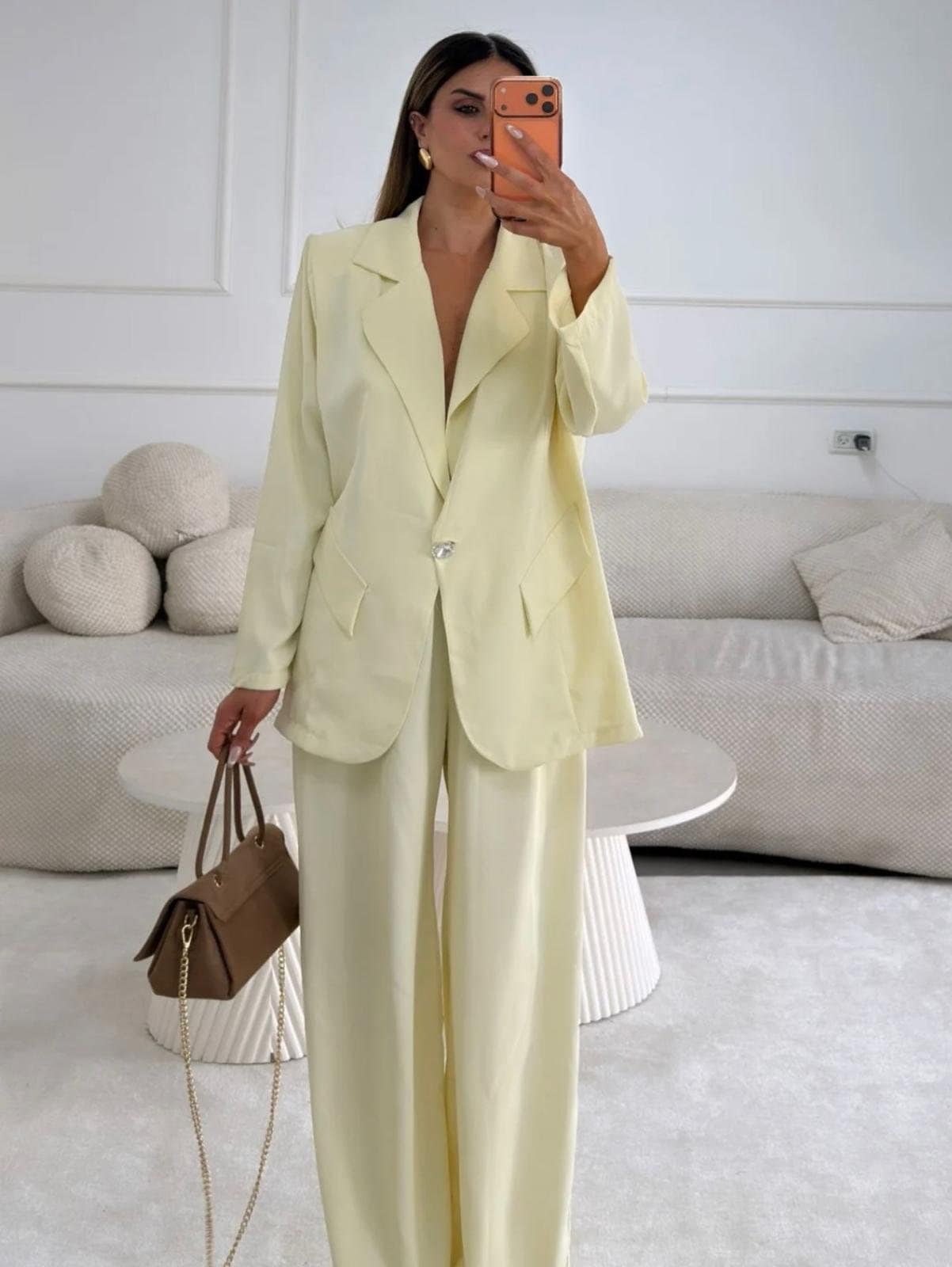 חליפת שני חלקים מחויטת בגזרה משוחררת ללוק מושלם לאירוע או ליום יום