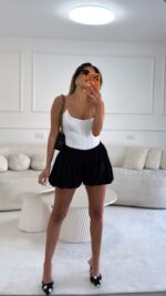 מכנסי שורטס לנשים המעוצבים בגזרת בלון רחבה ותפוחה, המעניקה מראה אופנתי, מלא בסטייל ומושך מבטים. המכנסיים כוללים חגורת גומי אלסטית במותן המאפשרת לבישה נוחה והתאמה למבנה הגוף, תוך יצירת כיווצים עדינים שמעצימים את הנפח בסיומת המכנס. הקונטרסט שנוצר בין הגזרה הרחבה של השורטס לבין חולצה צמודה מעניק צללית נשית, עדכנית ומחמיאה במיוחד. אידיאליים כיציאה יומיומית, בגדי חופשה לקיץ או לוק ערב קליל בשילוב אקססוריז נכונים. מגיעים במבחר צבעים: לבן נקי קלאסי, שחור על-זמני, וצהוב בננה מרענן. זמינים במידה אחת (וואן סייז) מחמיאה ונוחה.
