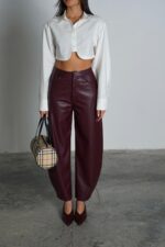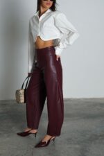 מחפשת מכנסיים עם נוכחות שישדרגו כל הופעה בשנייה? הכירי את מכנסי דמוי העור דגם מרלו. מדובר במכנסי נשים ארוכים המעוצבים בגזרת בלון טרנדית וייחודית, העשויים מבד דמוי עור רך, גמיש ואיכותי בגוון בורדו עמוק וחם. המכנסיים מתאפיינים בגזרה גבוהה האוספת ומדגישה את המותן בצורה מושלמת, וכוללים רכיסת כפתור ורוכסן, כיסים קדמיים, ולולאות חגורה קלאסיות. הרגליים מתרחבות באזור הירכיים ונאספות בעדינות כלפי מטה ליצירת צללית הבלון המבוקשת והמחמיאה. אידיאליים ליציאת ערב, דייט, אירוע, או לוק קז'ואל משודרג בשילוב חולצת קרופ קצרה או סריג צמוד.