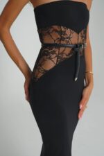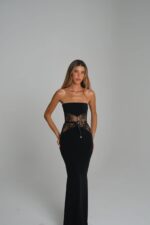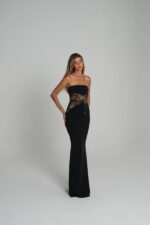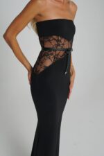 שמלת סטרפלס מקסי LUNA שילוב תחרה