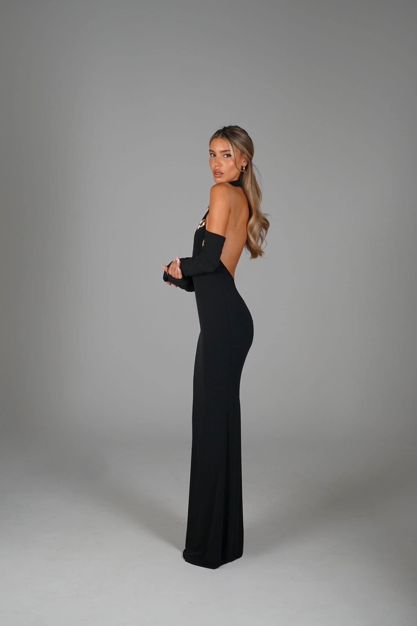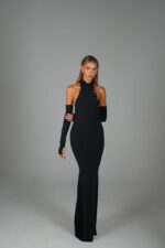 פיס היסטרי של שטיח אדום המשלב גזרת קולר דרמטית, גב חשוף עמוק, וכפפות נשלפות שנותנות לוק עוצר נשימה של הוליווד. One size של שלמות