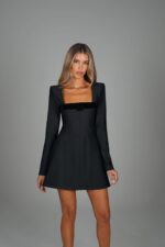 מחפשת את השמלה השחורה המושלמת עם טוויסט של יוקרה? הכירי את שמלת מיני ליבר. מדובר בשמלת ערב צמודה ומחטבת בצבע שחור עמוק, המעוצבת עם שרוולים ארוכים למראה אלגנטי ומתוחכם. גולת הכותרת היא המפתח המרובע והמחמיא בצוואר, המעוטר בגימור סאטן מבריק ועשיר שמוסיף נגיעה של גלאם זוהר למראה הכללי. השמלה עשויה מבד אלסטי, איכותי ואוסף המחמיא לקימורי הגוף. אידיאלית לאירועי ערב, קוקטייל, או יציאה רומנטית שבה את רוצה לשדר נשיות עוצמתית בסטייל בלתי מתאמץ. בחירה מושלמת בקולקציית היוקרה של הבוטיק.