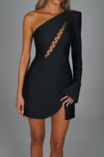 מי אמרה שהשמלה השחורה הקטנה צריכה להיות משעממת? שמלת מיה אסימטרית היא כל מה שאת צריכה כדי להרגיש הכי נועזת וסקסית שיש. שרוול ארוך בצד אחד מול כתף חשופה, מפתח חיתוך דרמטי באזור החזה המעוטר בבד רשת עדין, ושסע מיני בצד שגורם לכולן להסתכל. הפיס האולטימטיבי למסיבה הבאה שלך.