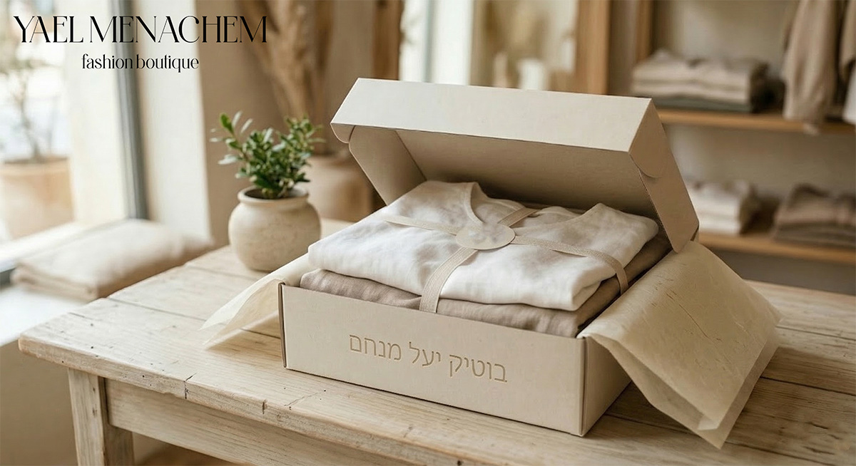 אנחנו בבוטיק יעל מנחם עושות הכל כדי שהלוק החדש שלך יגיע אלייך כמה שיותר מהר, כשהוא ארוז באהבה ומוכן ללבישה. מרגע ההזמנה, אנחנו מטפלות בפריטים שלך בקפידה כדי שתקבלי חוויית אנבוקסינג מושלמת, ממש כאילו קנית אותם אצלנו בסטודיו.